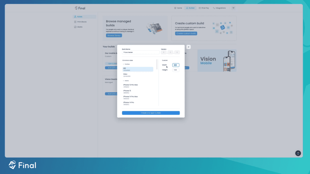 La fortaleza de su quiosco de verificación de precios radica en su capacidad de entregar datos en tiempo real con precisión. Final Builder permite una fácil integración del backend para actualizaciones confiables: